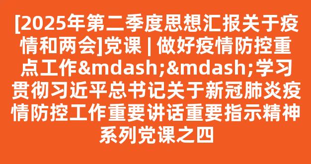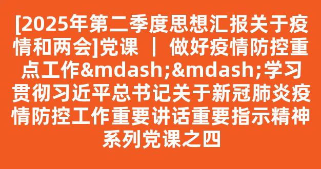 [2025年第二季度思想汇报关于疫情和两会]党课 | 做好疫情防控重点工作——学习贯彻习近平总书记关于新冠肺炎疫情防控工作重要讲话重要指示精神系列党课之四