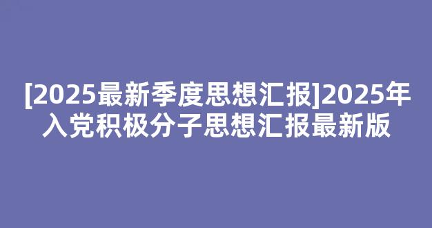 [2025最新季度思想汇报]2025年入党积极分子思想汇报最新版