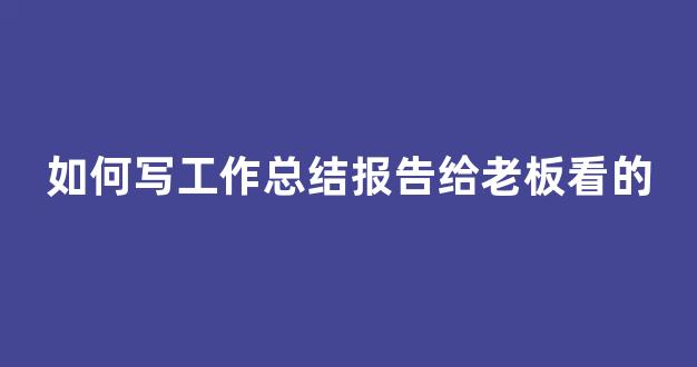 如何写工作总结报告给老板看的