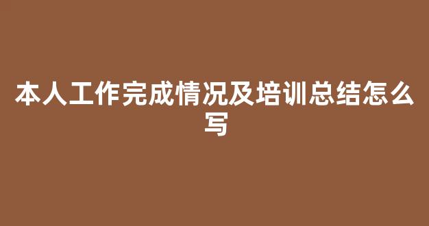上一篇: 如何写工作总结和工作计划模板图片(怎么写工作总结和工作计划) >本人工作完成情况及培训总结怎么写(培训工作完成情况概述)< 下一篇: 工作总结与计划怎么写范文(工作总结和计划范文大全) >