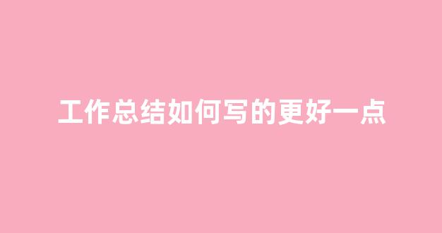 工作总结如何写的更好一点(工作总结应该怎么写好)