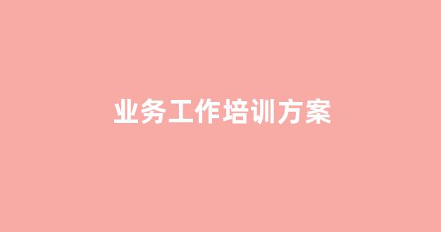 上一篇: 工作总结计划报告(工作总结报告简短) >业务工作培训方案(业务人员培训方案)< 下一篇: 工作总结与计划格式(工作总结日期姓名格式) >