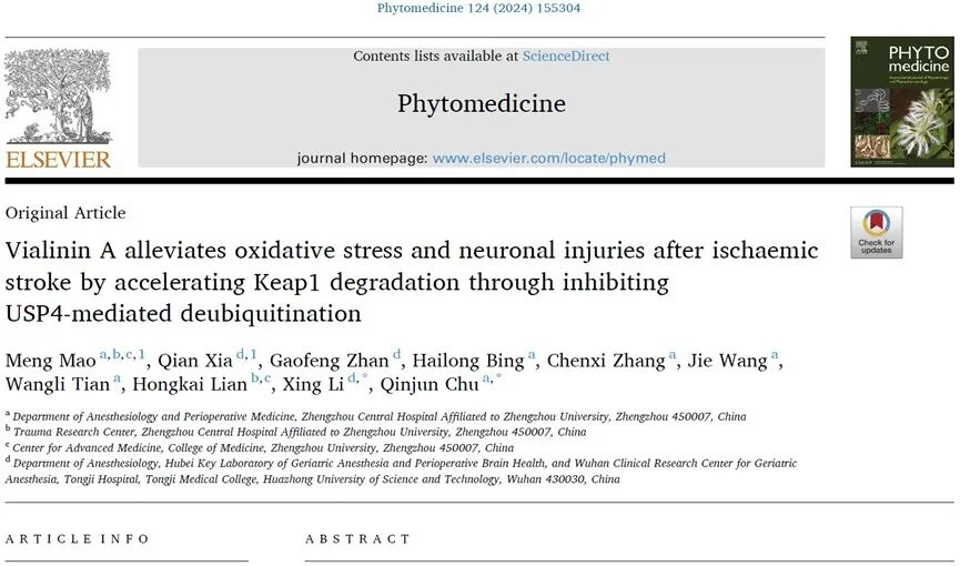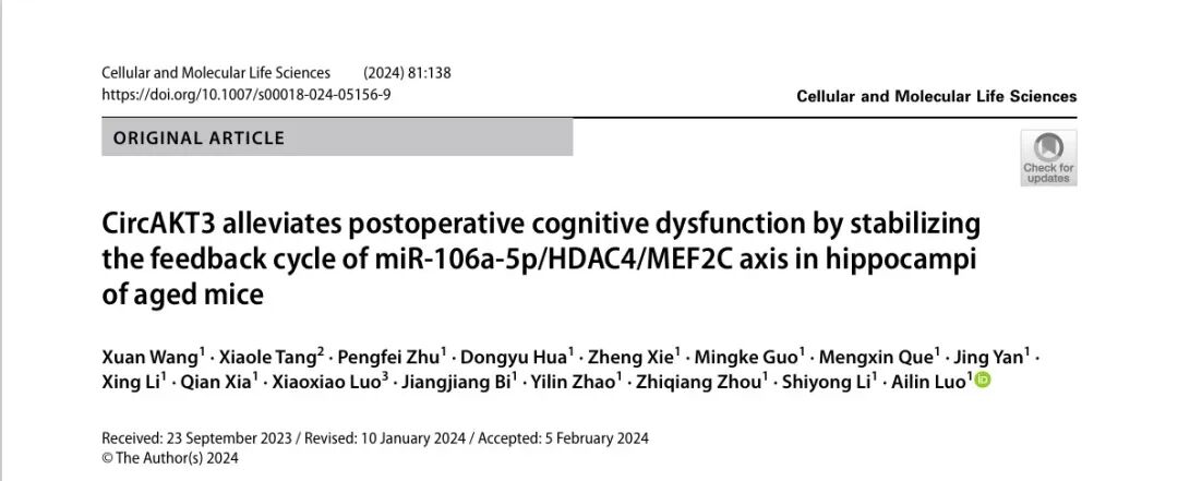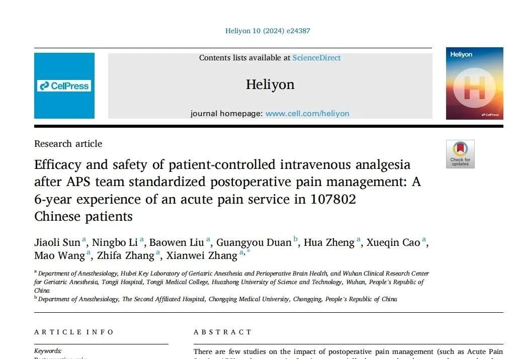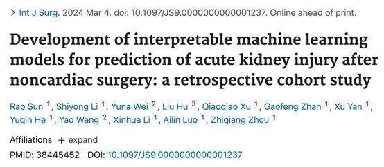 习近平总书记在全国科技大会、国家科学技术奖励大会、两院院士大会上强调,“坚持‘四个面向’的战略导向,面向世界科技前沿、面向经济主战场、面向国家重大需求、面向人民生命健康,加强科技创新全链条部署、全领域布局,全面增强科技实力和创新能力”。华中科技大学同济医学院附属同济医院麻醉学教研室以习近平总书记提出的“四个面向”为指引,不断向科学技术广度和深度进军,坚持做对患者有意义的临床和基础科学研究,满足人民群众健康需求,为人民群众提供全方位的围术期健康和舒适化服务,为健康中国建设贡献自己的力量。 同济医院麻醉学教研室由我国现代麻醉学奠基人之一金士翱教授于1956年6月创建,是湖北省最早成立的麻醉学教研室。1978年被批准为麻醉学科硕士点,1984年成为麻醉学科博士点,1995年成为博士后流动站。2007年被批准为教育部国家级重点学科,2008年被评为湖北省优势学科,2010年被评为卫生部临床重点专科,2022年被批准为武汉市老年麻醉临床医学研究中心,2023年获批老年麻醉与围术期脑健康湖北省重点实验室。目前同济医院麻醉学教研室主任为罗爱林教授,科室共有医师141人,其中二级教授3人(罗爱林教授,田玉科教授,张传汉教授),三级教授3人(张咸伟教授,梅伟教授,项红兵教授),正高17人,副高48人,其中博导9人,硕导15人。同济医院麻醉学教研室一直以来高度重视科研工作,为了全方位给年轻医师营造浓厚科研氛围,教研室定期举办基础科研系列专题讲座,举办临床科研培训班提升科室年轻医师临床科研能力,每年在科内评选优秀论文,开展优秀论文精讲活动启发年轻医师科研思维,每年举办国家自然科学基金动员会及科内集中标书评改会以提升标书质量,设立科研秘书、脱产科研假及标书假等政策保障科研工作有序开展,定期在“同济麻醉论坛”公众号推送科室发表的SCI论文积极宣传科室科研成果并扩大学术影响力。以上举措对开展高质量科研工作起到了重要的推动作用。 值此中华人民共和国成立75周年之际,同济医院麻醉学教研室将2024年科室前三季度科研成果进行总结。截至目前,同济医院麻醉学教研室共发表SCI论文31篇,获资助科研课题8项,资助金额共382万元,其中国家自然科学基金面上项目1项,国家自然科学基金青年科学基金项目2项,湖北省自然科学基金3项,同济医院高质量临床研究基金1项,横向课题1项;获国家发明专利1项,实用新型专利5项。喜迎2024年国庆,同济麻醉献上2024年科室前三季度SCI论文成果总结,祝愿祖国母亲生日快乐,国家繁荣昌盛! 1. 基于可解释性机器学习构建非心脏手术后急性肾损伤风险预测模型 早期发现术后急性肾损伤(AKI)高风险患者有助于提前制定预防措施。本研究旨在使用机器学习算法开发非心脏手术术后AKI的预测模型。课题组回顾性纳入行非心脏手术的成年患者76457名作为模型开发队列,11910名作为验证队列。模型开发队列的患者中位年龄为52岁(IQR:42-61岁),1179名患者(1.5%)术后出现了AKI(KDIGO标准)。纳入的预测变量有87个,其中56个为术前变量、31个为术中变量。课题组使用了多种机器学习算法,包括逻辑回归、随机森林、极端梯度提升和梯度提升决策树(GBDT)等,分别建立了包含全部变量(术前和术中变量)以及仅包含术前变量的预测模型。结果显示GBDT算法的预测性能最佳,受试者工作特征曲线下面积(AUROC)分别为0.849(95%CI,0.835-0.863)和0.828(95%CI,0.813-0.843)。课题组使用Shapley Additive Explanations(SHAP)分析来进行模型解释并确定模型中变量的重要性。SHAP分析结果显示,年龄、术前血清γ-谷氨酰转肽酶和肌酐水平、ASA分级和术前血压是最重要的术前预测因素;而手术时间和手术类型、术中血压、术中使用升压药以及输血是最重要的术中预测因素。研究还发现,仅纳入最重要的10个特征建立的简化模型,其预测性能仍然较好,AUROC分别为0.839(全部变量)和0.818(仅术前变量)。总之,该研究建立的非心脏手术术后AKI预测模型具有较好的预测性能,特征重要性分析揭示了AKI发生的潜在高危因素,这对于术前识别高危患者和制定防治策略具有重要意义。此外,该研究还证实了仅基于术前因素的简化模型也有较好的预测性能,具有良好的临床应用前景。本研究发表在International Journal of Surgery(IF:15.3;JCR排名:外科领域2/213)。孙绕副主任医师和李世勇副主任医师为共同第一作者,李新华副主任医师、罗爱林教授和周志强副主任医师为共同通讯作者。 2.靶向TRPM通道治疗脑缺血再灌注损伤 脑缺血再灌注损伤是中风治疗中的一大挑战,而瞬时受体电位M通道(TRPM)在钙、钠、镁离子通道调控中发挥关键作用,使其成为治疗脑缺血再灌注损伤的潜在靶点。2024年7月,梅伟教授团队受邀在Trends in Pharmacological Sciences(IF:13.9)上发表Forum Article,深入探讨了TRPM通道在脑缺血再灌注损伤中的作用,并讨论了靶向TRPM通道治疗脑缺血再灌注损伤的挑战与未来方向。刘代强博士为本论文的第一作者,梅伟教授及周亚群博士为本论文的共同通讯作者。 TRPM通道在脑缺血再灌注损伤中的作用涉及多个复杂的生物学机制。TRPM2激活通过介导线粒体功能障碍、氧化应激、钙超载等机制加剧脑缺血再灌注损伤。TRPM4通道调节细胞内钙稳态,其中与SUR1形成的复合体在离子通道功能的调节中发挥关键作用。TRPM7通道介导双价阳离子的流入,并在细胞镁稳