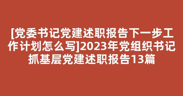 [党委书记党建述职报告下一步工作计划怎么写]2023年党组织书记抓基层党建述职报告13篇