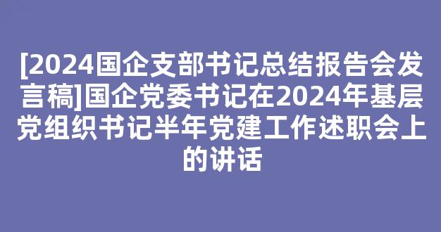 [2024国企支部书记总结报告会发言稿]国企党委书记在2024年基层党组织书记半年党建工作述职会上的讲话参考范文如下: